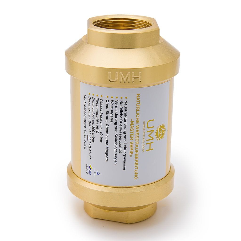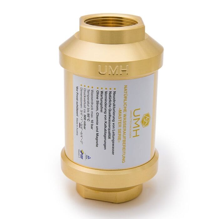 Versorgen Sie Ihre Wohnung oder Ihr gesamtes Haus mit hochwertig energetisiertem Wasser. Das UMH Master wurde speziell für den Anschluss an die Hauptwasserleitung entwickelt. Das aus Spezialmessing gefertigte Gerät ist mit einer speziellen Edelsteinkomposition bestückt. Zusätzlich sorgen im Inneren des Gerätes ein hyperbolischer Strömungszyklus und handgefertigte Phiolen für ein hochstabiles Energiefeld. Mit diesem Einbaugerät genießen Sie die Vorteile natürlichen Wassers in Quellwasserqualität aus jeder Leitung in Ihrem Heim.