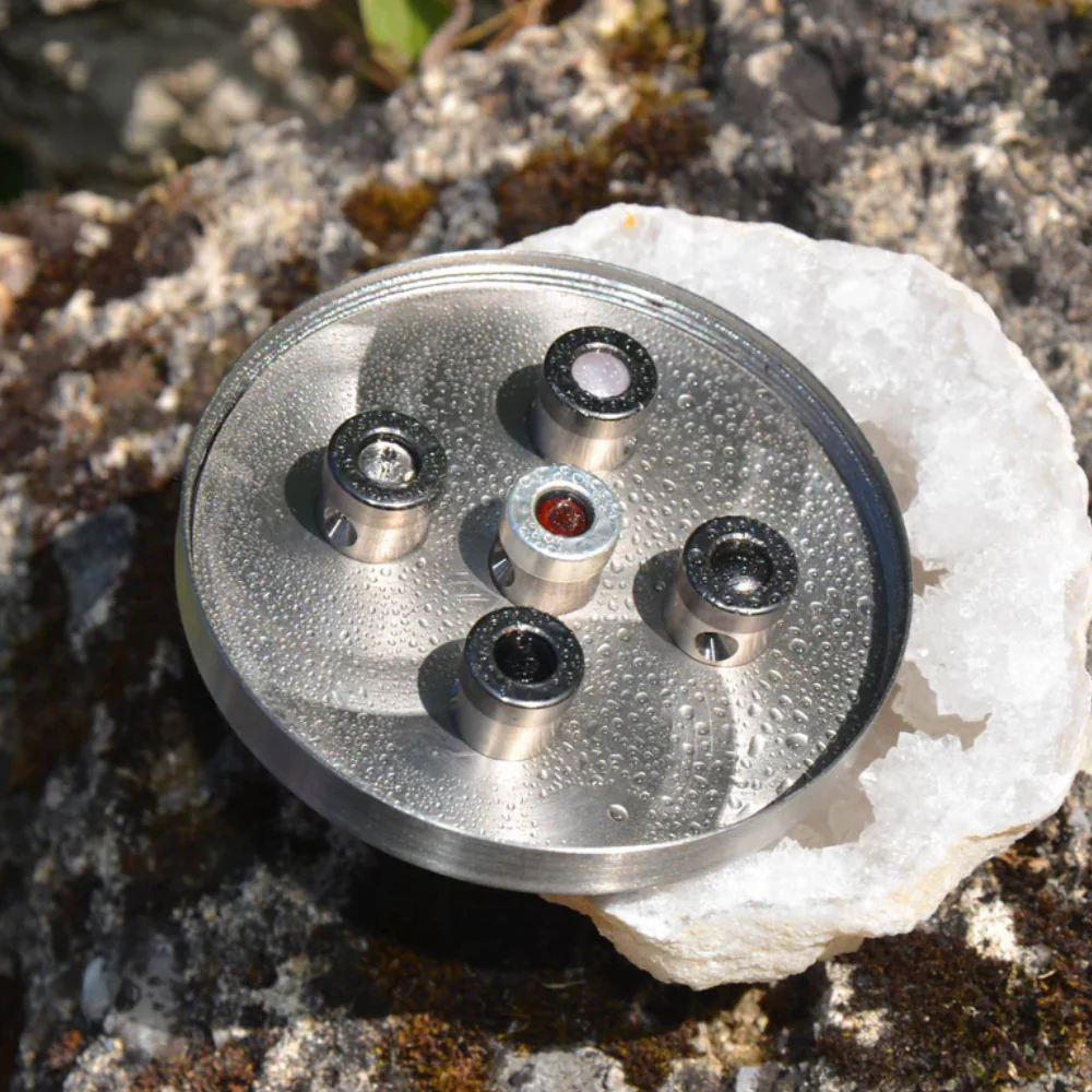 Am Wasserumkehr-Punkt der Wirbelkammern wird ein qualitativ hochwertiger Edelstein gefasst. Die Kristallwirbel-Kammern saugen aufgrund Ihrer Konstruktion Luft nach innen, während hochverwirbeltes Wasser nach aussen geht. So entstehen zu Beginn zwei sich gegenseitig beschleunigende Primärwirbel, die nach oben gehend immer enger werden. Sie treffen sich mit höchster Geschwindigkeit an ihrem Nullpunkt, wo in Millisekunden eine intensive Informierung durch den dort eingebauten Edelstein stattfindet. Das einfließende Wasser wird extrem beschleunigt und gewinnt seine ureigene Kraft und Dynamik zurück.
